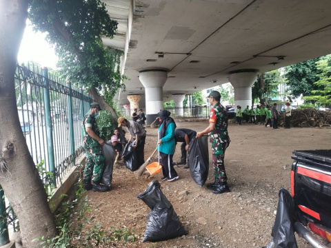 Anggota Koramil Jatinegara Bersama Tiga Pilar Bersihkan Fasos dan Fasum Bidara Cina