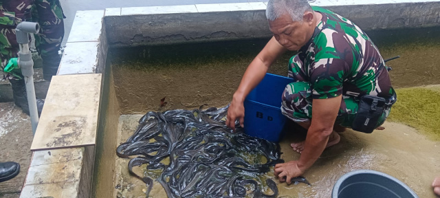 Babinsa Koramil Sawah Besar Panen Ikan Hasil Budidaya Mandiri