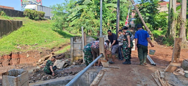 Kebut Pengerjaan Bagi Rakyat, Personel Koramil Tangerang Pasang Turap Jembatan Beton Garuda