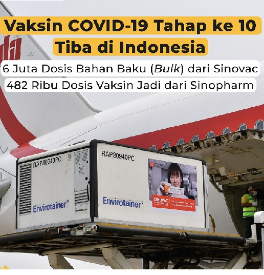 Lagi 3,8 Juta Dosis Vaksin Impor Tiba , Total Positif 1.651.794 Sembuh 1.506.599 Meninggal 44.939